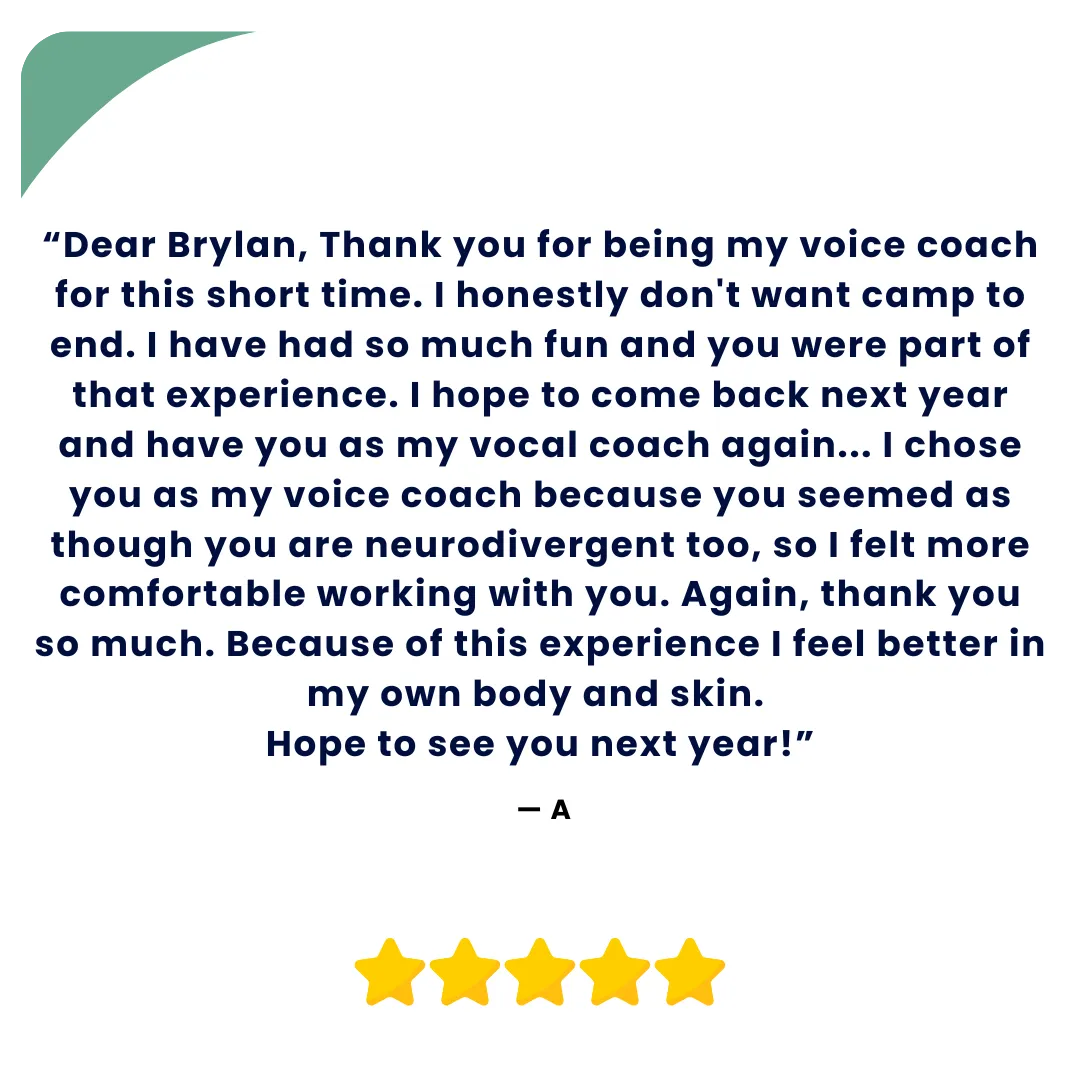 As a certified Chekhov acting coach and performer in productions like Mansfield Park, Into the Woods, The Juniper Tree I know how to guide students through voice, acting, or both, in a way that feels personal, supportive, and effective. Whether you're a beginner or prepping for auditions, I’ll help you grow with a custom plan, clear guidance, and a space where your creativity can thrive.